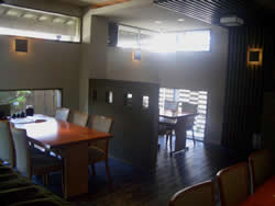一つは気軽な居酒屋的雰囲気のカウンター・ボックスゾーン。 開口が大きく取られ、自然光をふんだんに取り入れた空間となっていました。 ここでは旬の和食と美味しいお酒がいただけます。