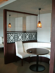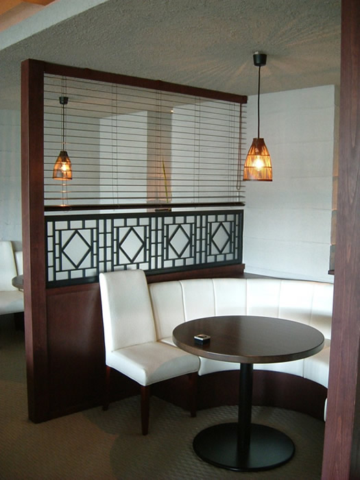 掘りごたつの部屋とお庭に面した部屋があり、照明は暗めで通路とも長い暖簾で仕切られていて、 贅沢に和・御膳がいただける、のんびりくつろぎの空間です。