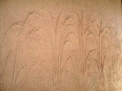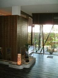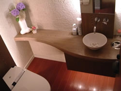通路の床や壁、お手洗いなどにも水と土を感じさせる癒しの空間となっており、